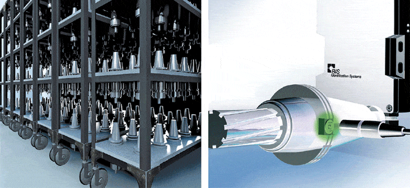 Machine tools can be fitted with RFID tags to track and download offset measurements (from presetter), setup parameters, usage and tool life data. Source: Balluff